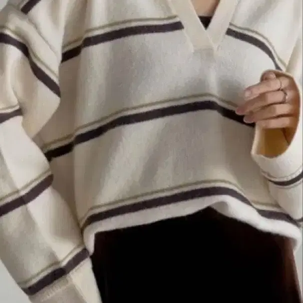 • [ grove ] 리브 니트탑/스웨터/긴팔/V넥/베이지/심플