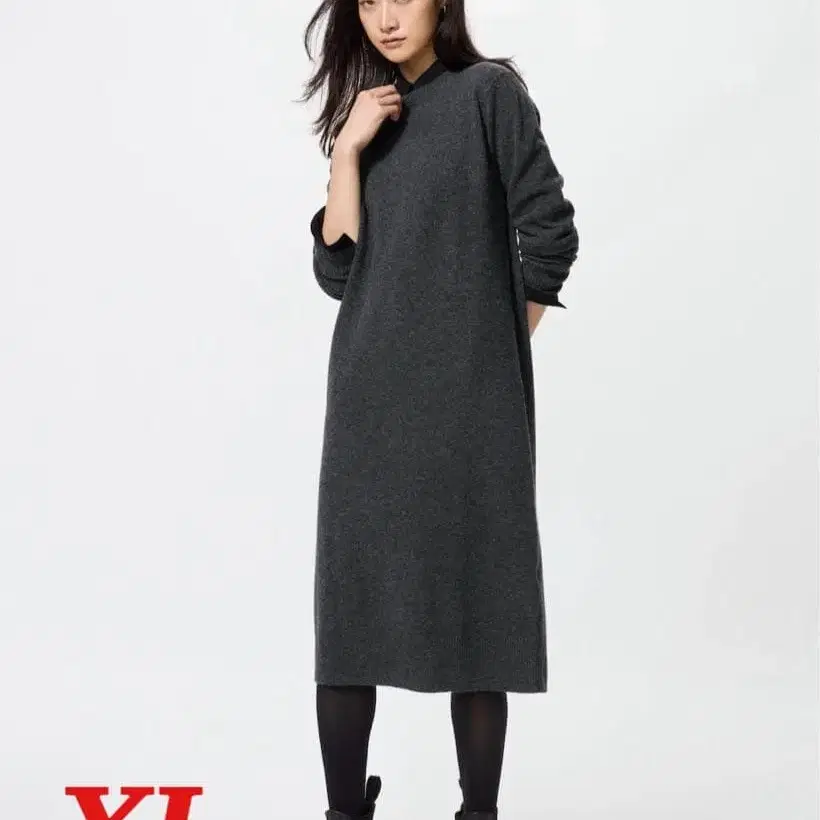 • 유니클로 니트 원피스 롱 기장 무지 캐주얼 가을/겨울 터틀넥