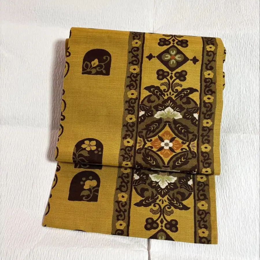 나고야 오비 꽃무늬 황토색
