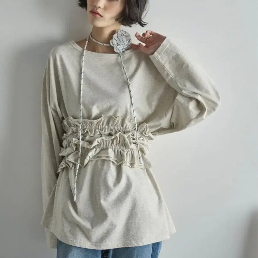 [ THE YON ] 프릴 뷔스티에 세트 루즈핏 T