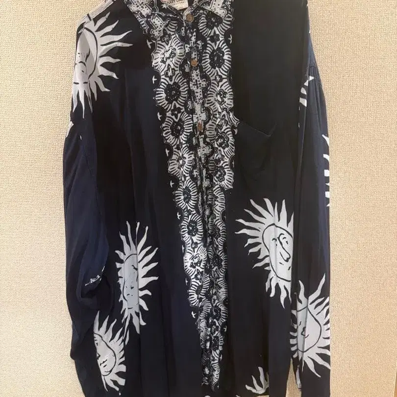태양 무늬 긴팔 셔츠 네이비/화이트 레이온