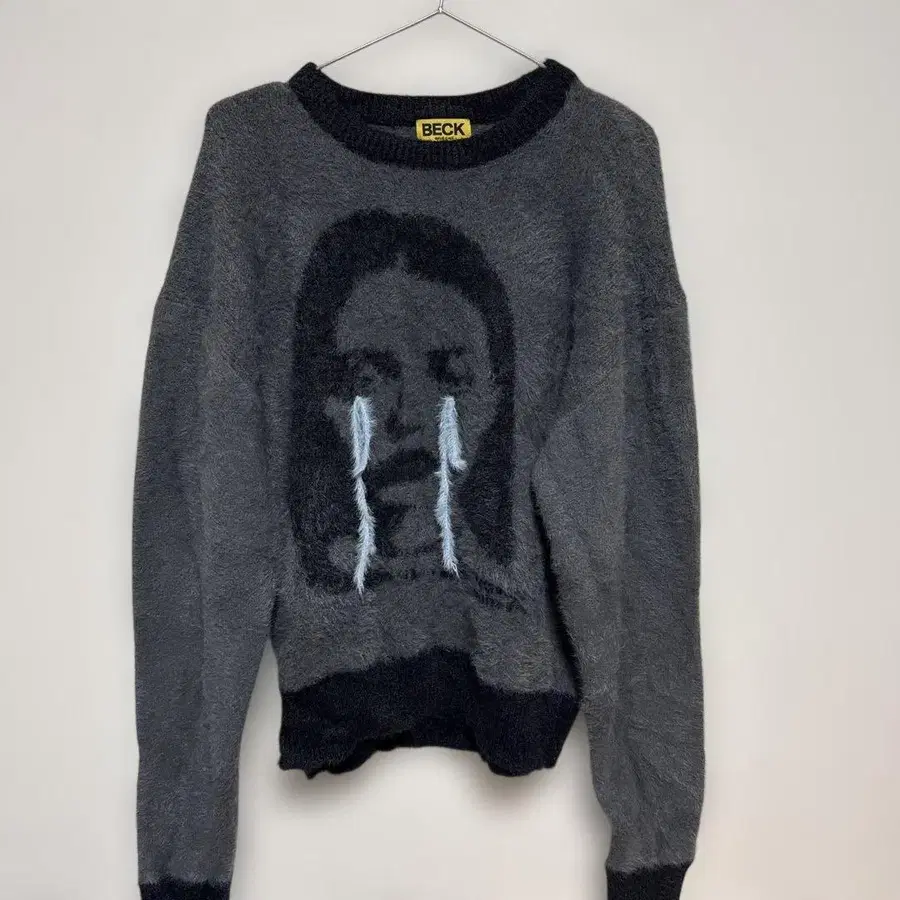 BECK 그레이 얼굴 프린트 니트 스웨터