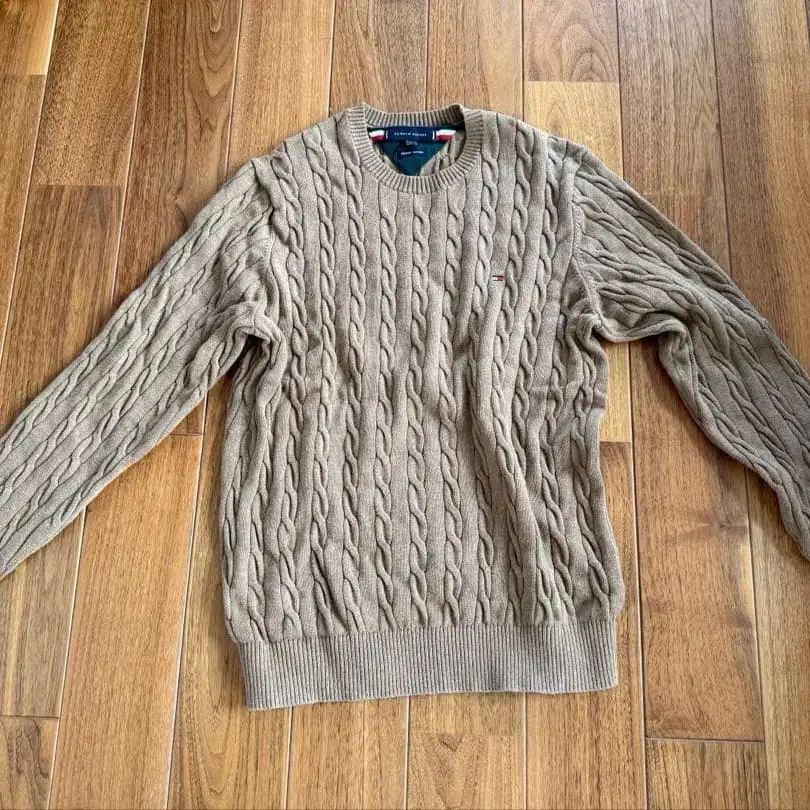 타미힐피거 베이지 케이블 니트 남성용 L 사이즈