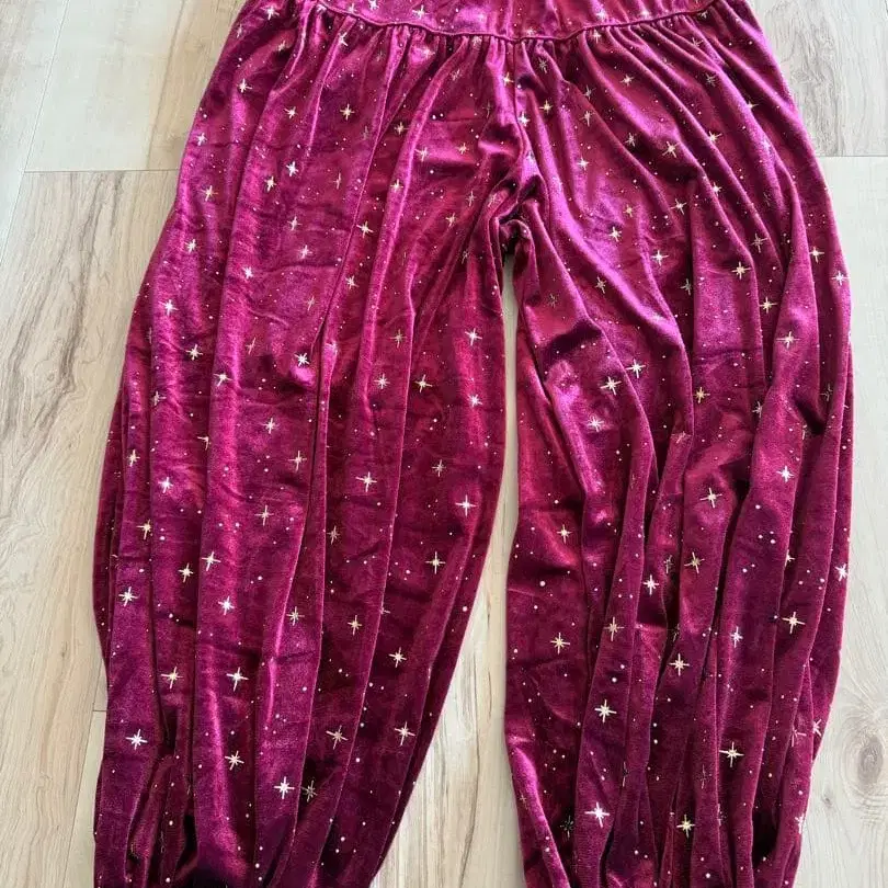 Anina 별 패턴 벨벳 팬츠 와인 레드