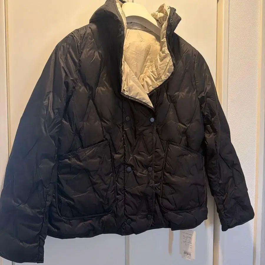 후드 부착 다운 자켓 아이보리 블랙 (양면 타입)