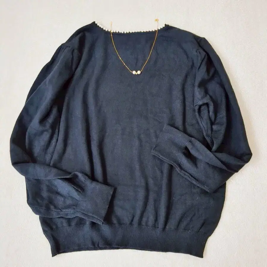 우이에 스웨터 펄 장식 크루넥 고급 심플 성인 여성스러운 L