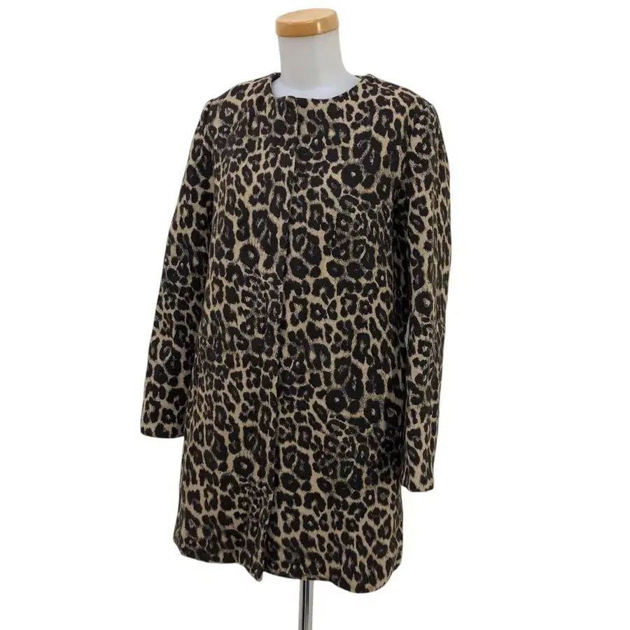 12D675-55 ZARA WOMAN 자라 우먼 긴팔 노카라 코트 아우터 겉옷 상의 브라운 계열 표범 무늬 레오파드 무늬 여성용 XS←US