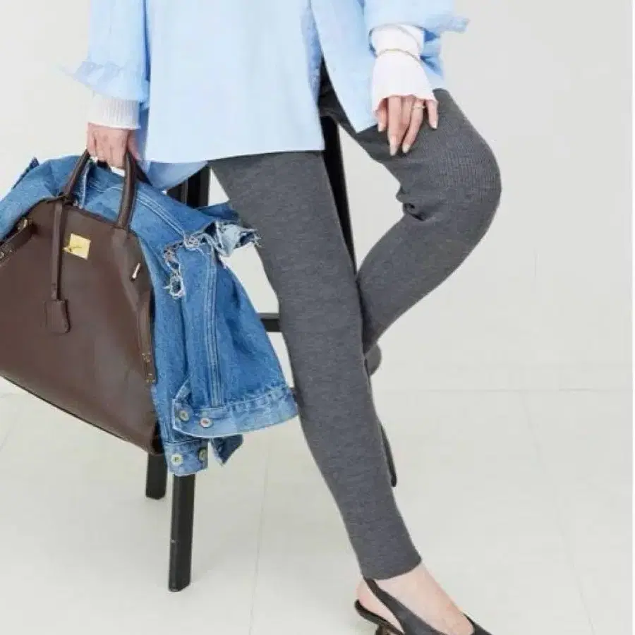 슬로브 이에나 워셔블 니트 레깅스 리브 레깅스 그레이 울