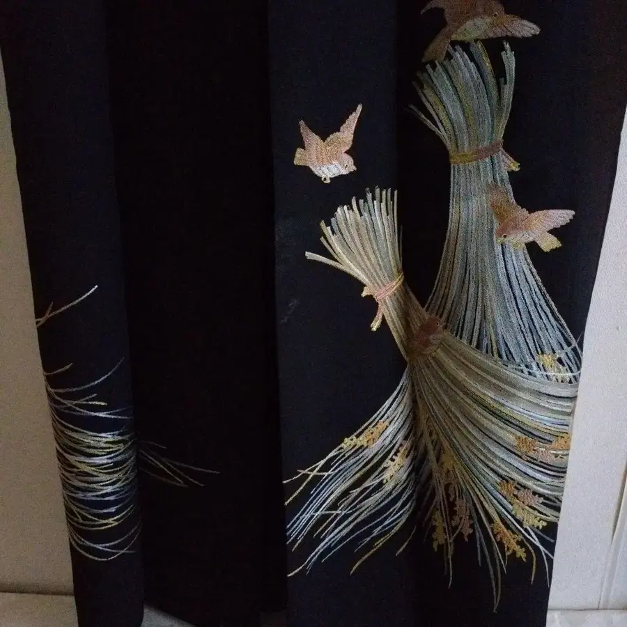 자동 번역되었어요. 원문보기블랙 베이스 크레이프 원단에 참새와 벼 이삭 자수가 놓인 호몬기입니다. 손자수는 아니지만, 자수의 그라데이션이 매우 아름답습니다. 겉감, 안감, 하카마 모두 실크 100%입니다. 손바느질.