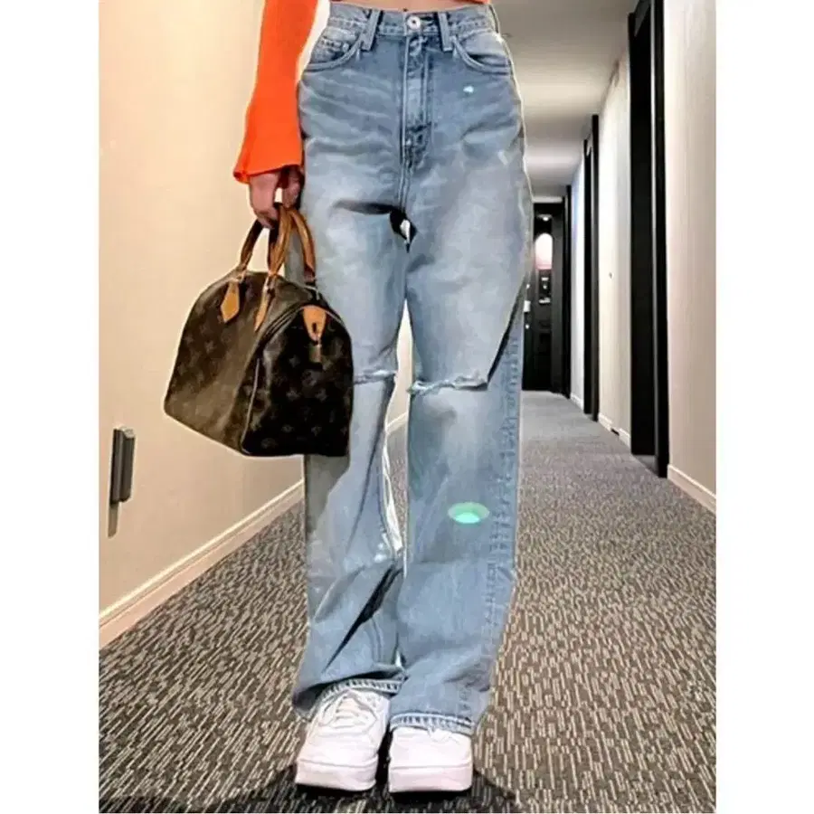 GYDA H W KNEE 데미지 와이드 데님 팬츠