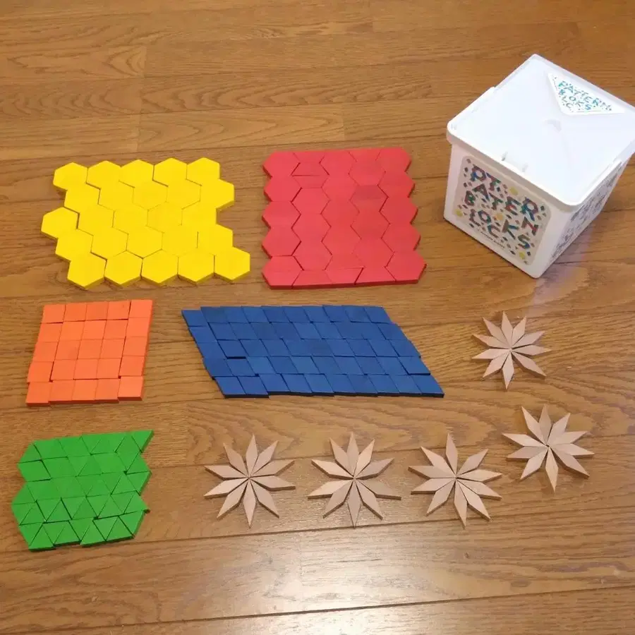 패턴 블록 나무 완구 250 피스 손잡이 달린 큐브 케이스