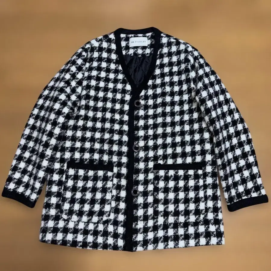 자동 번역되었어요. 원문보기모노톤의 체크 무늬가 인상적인 트위드풍 코트입니다. 충전솜이 들어 있어 방한성도 좋습니다.