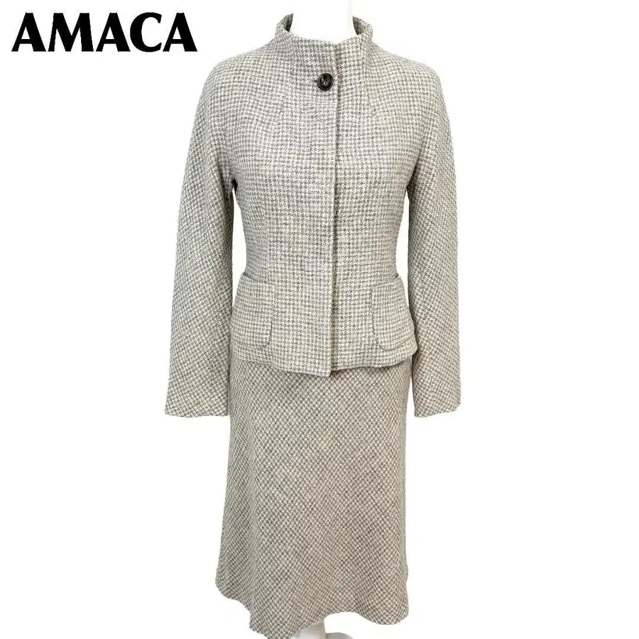 새상품급 AMACA 울 스커트 셋업 38 그레이 x 베이지 하운드투스