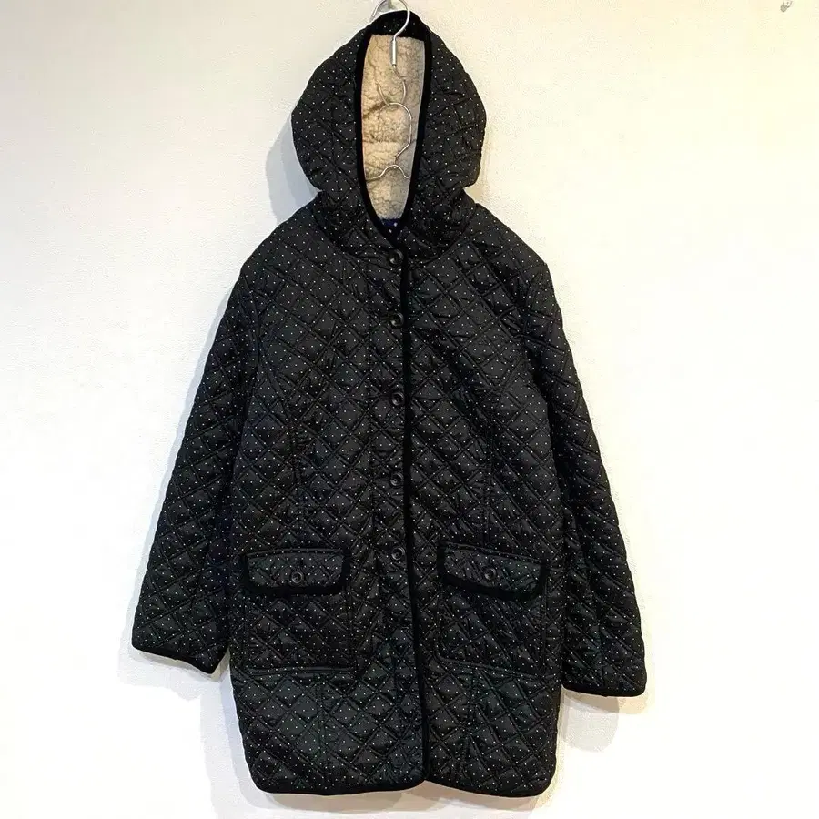 [키로루안] 퀼팅 자켓 후드 보아 안감 도트 올 패턴 전체 버튼 L