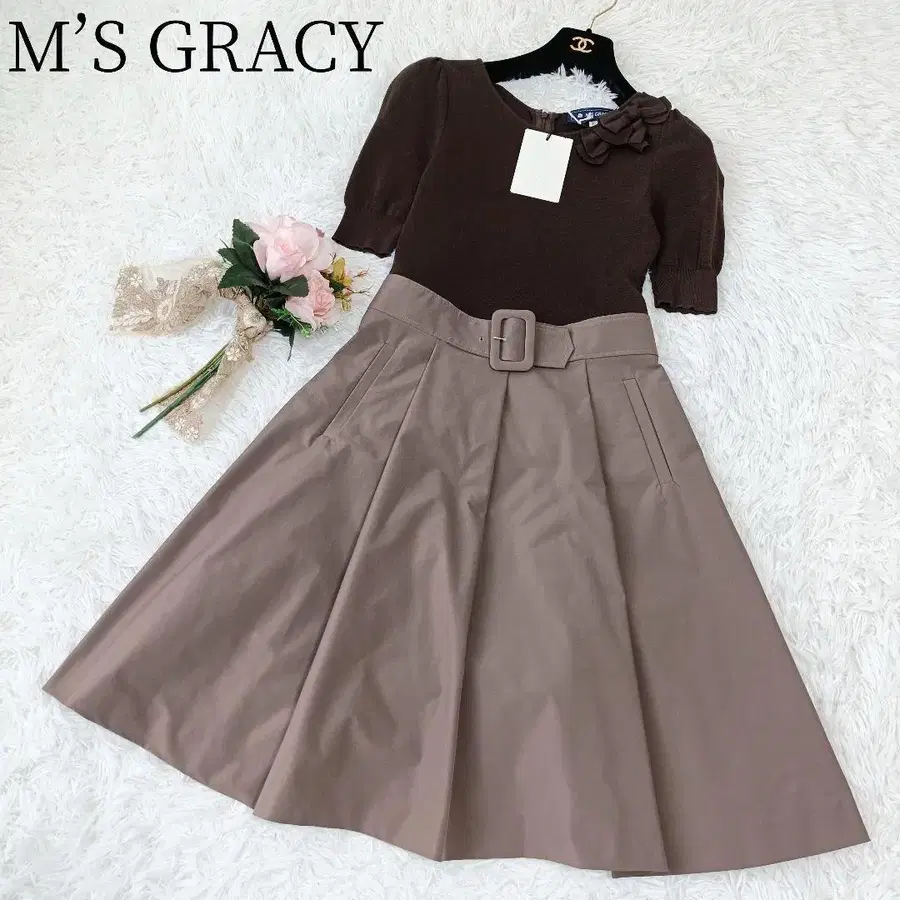 [ 엠즈 그레이시 ] 롱 원피스 도킹 벨트 이소재 플레어 니트