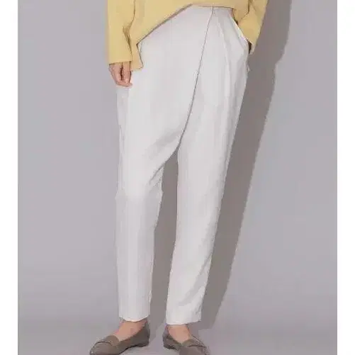 깔끔한 인상의 폴리에스테르 더블 크로스를 사용했습니다. 허리 프론트 부분의 비대칭 디테일이 눈길을 끄는 팬츠입니다. 약간 코쿤 느낌의 페그 실루엣으로, 심플하면서도 트렌디한 느낌의 한 벌로 완성했습니다. 깔끔한 터치의 원단이라 포근한 니트탑과도 궁합이 좋습니다.