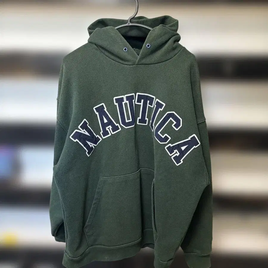 NAUTICA 다크 그린 프론트 로고 후드티