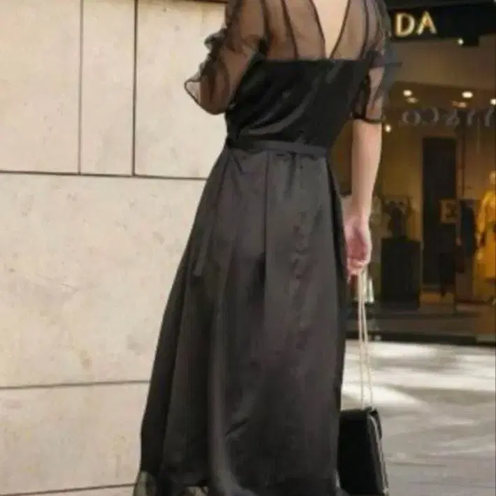 마이샤우티 블랙 롱 드레스 시스루 소매 포함