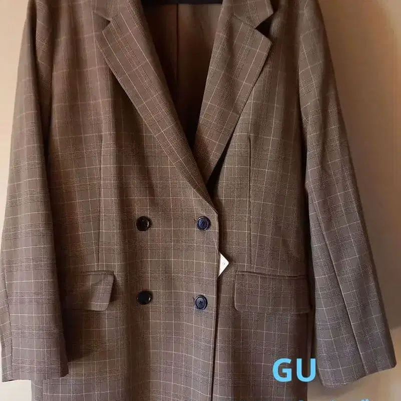 미사용 새상품 GU 더블 브레스트 자켓 체크 브라운 XXL