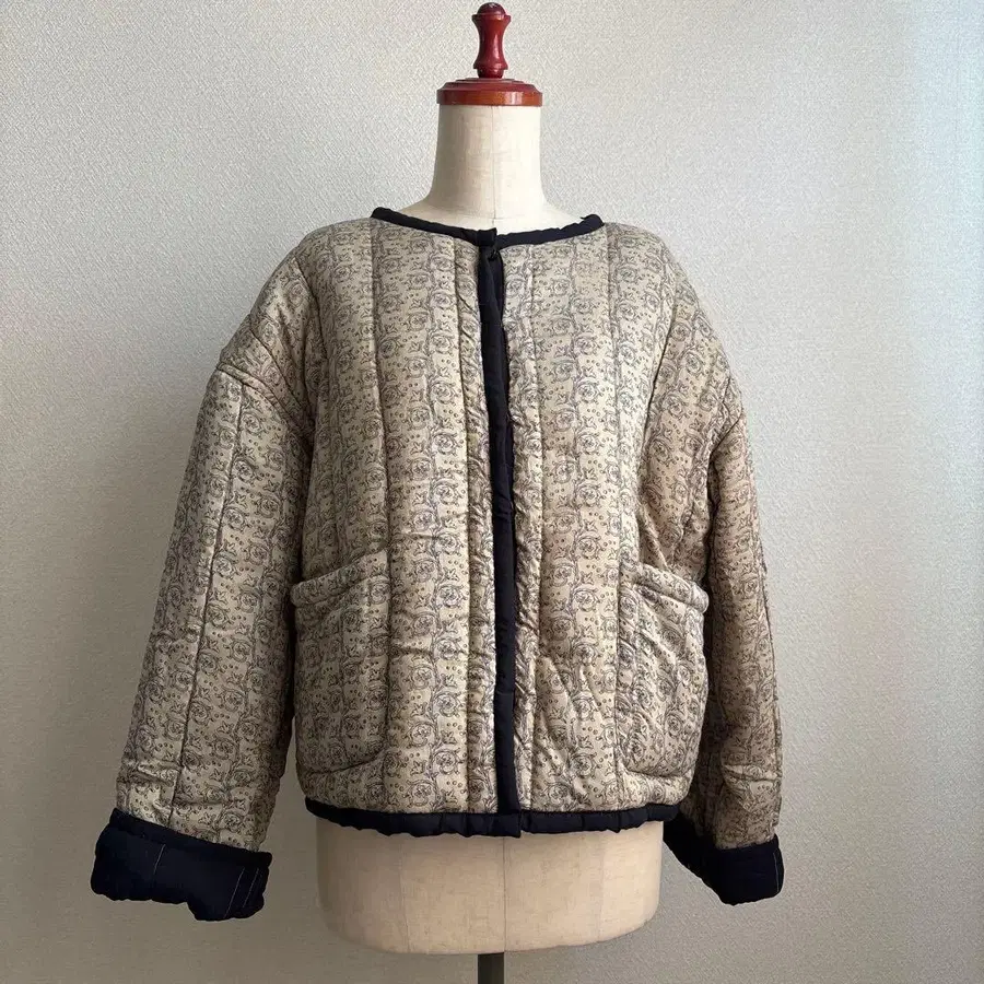 Soi-e/소아 꽃무늬 프린트 노카라 퀼팅 자켓