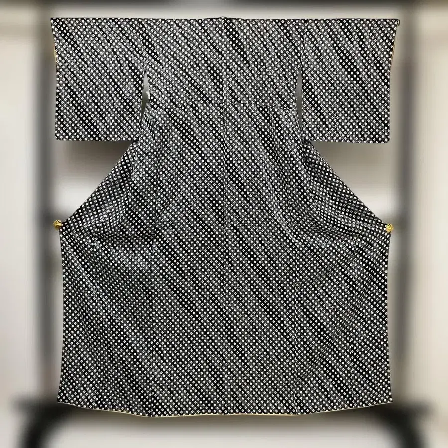 No.2860 순수 실크 블랙 총 조임 기하학 코몬 새상품급