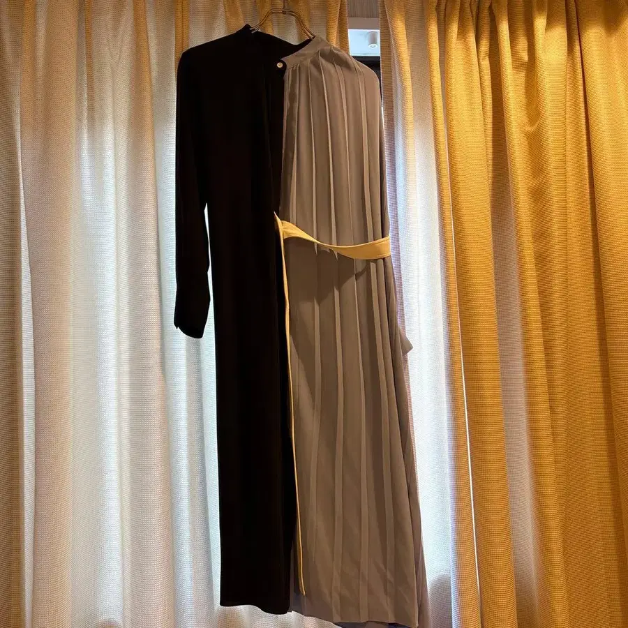 유니크 디자인 긴팔 원피스 블랙 스카이블루