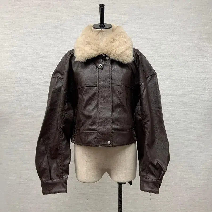 퍼 티펫 부착 인조 가죽 숏 블루종