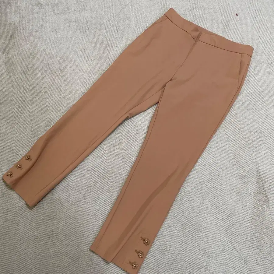 베이지 슬랙스 S 사이즈 꽃무늬 버튼 포함