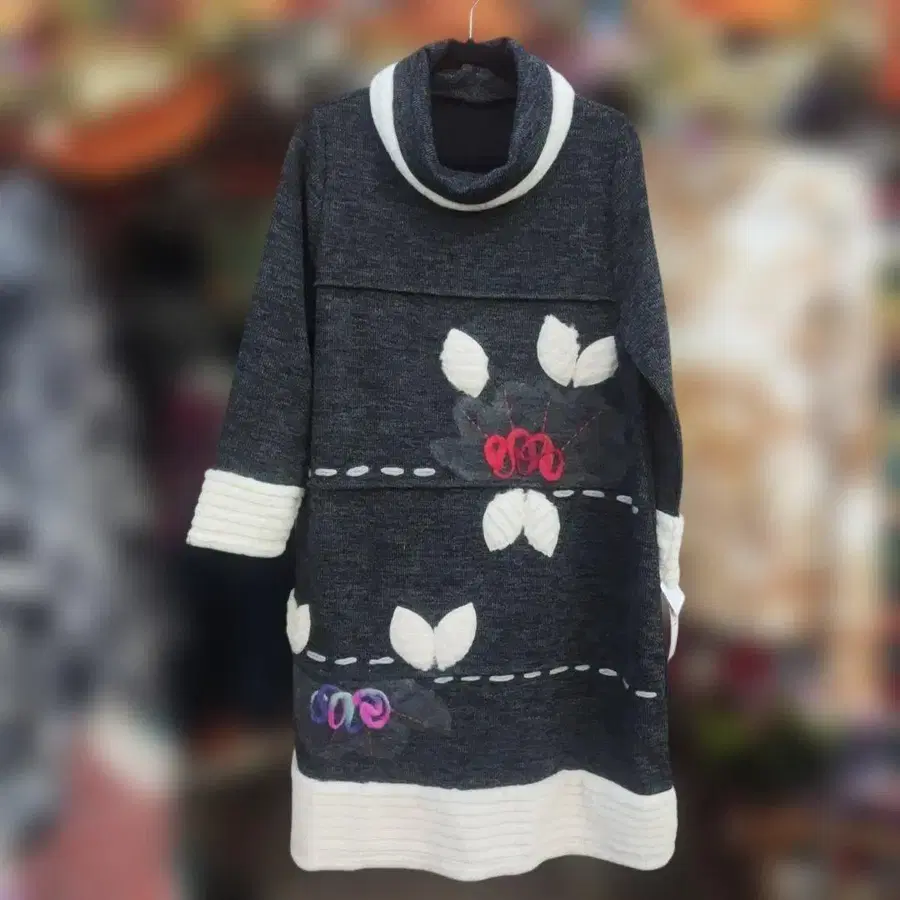새상품 추가 OFF LL 사이즈 꽃무늬 자수 그레이 하이넥 원피스