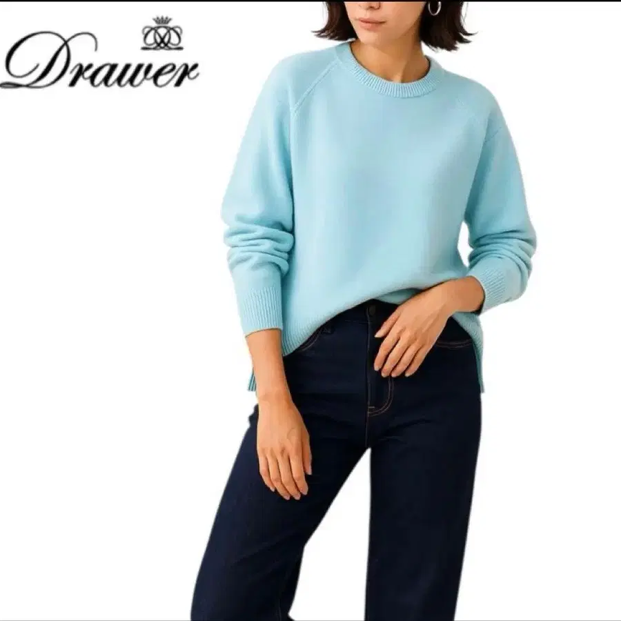 새상품급 드로어 drawer7g 캐시미어 스웨터 민트 블루