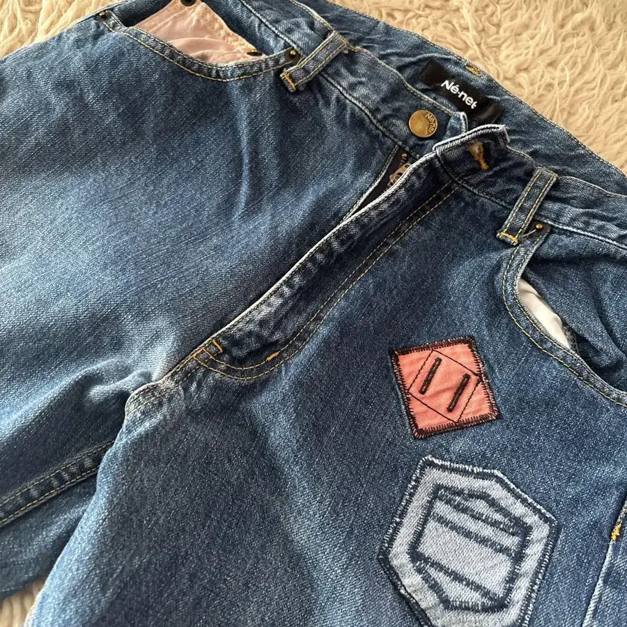 네넷 자수 패치 데님 팬츠 와펜 디자인 개성 면 100%