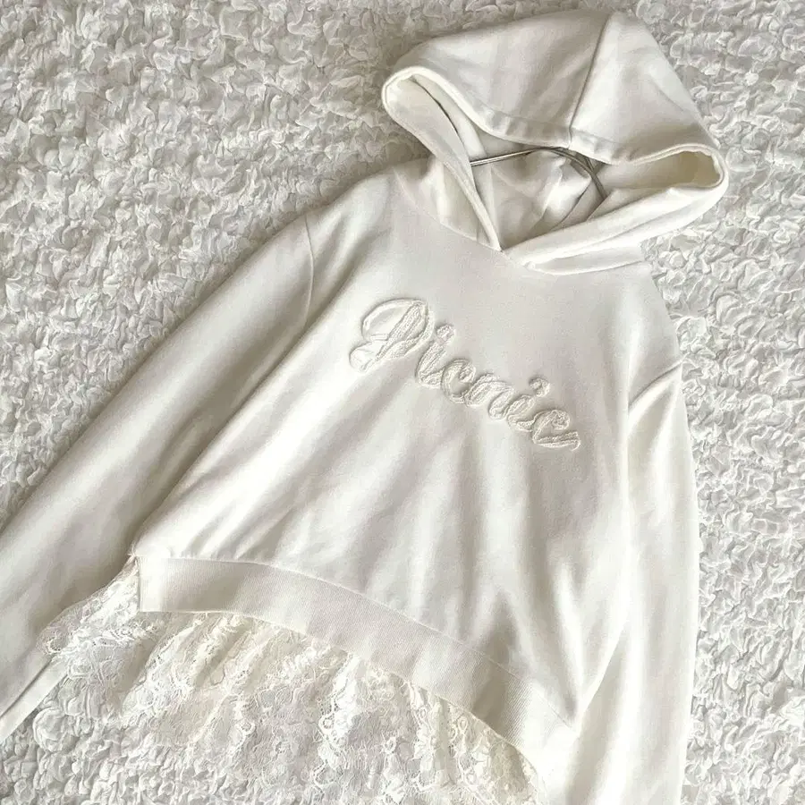 리즈리사 LIZLISA 프릴 레이스 히메 스타일 후드 부착 맨투맨 화이트