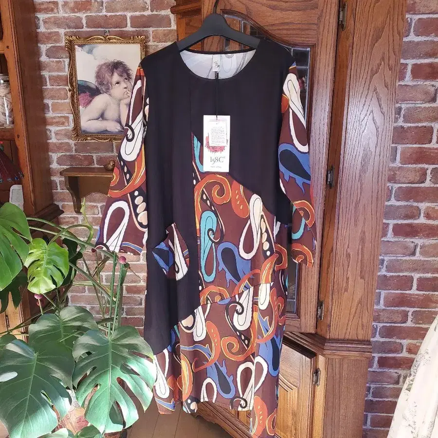 158C 추상 무늬 원피스 택 포함 새상품