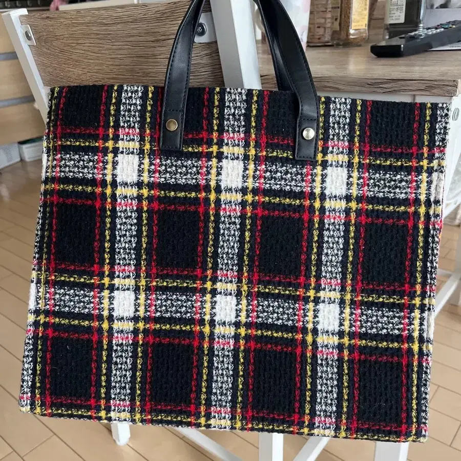 체크 무늬 토트백 중형