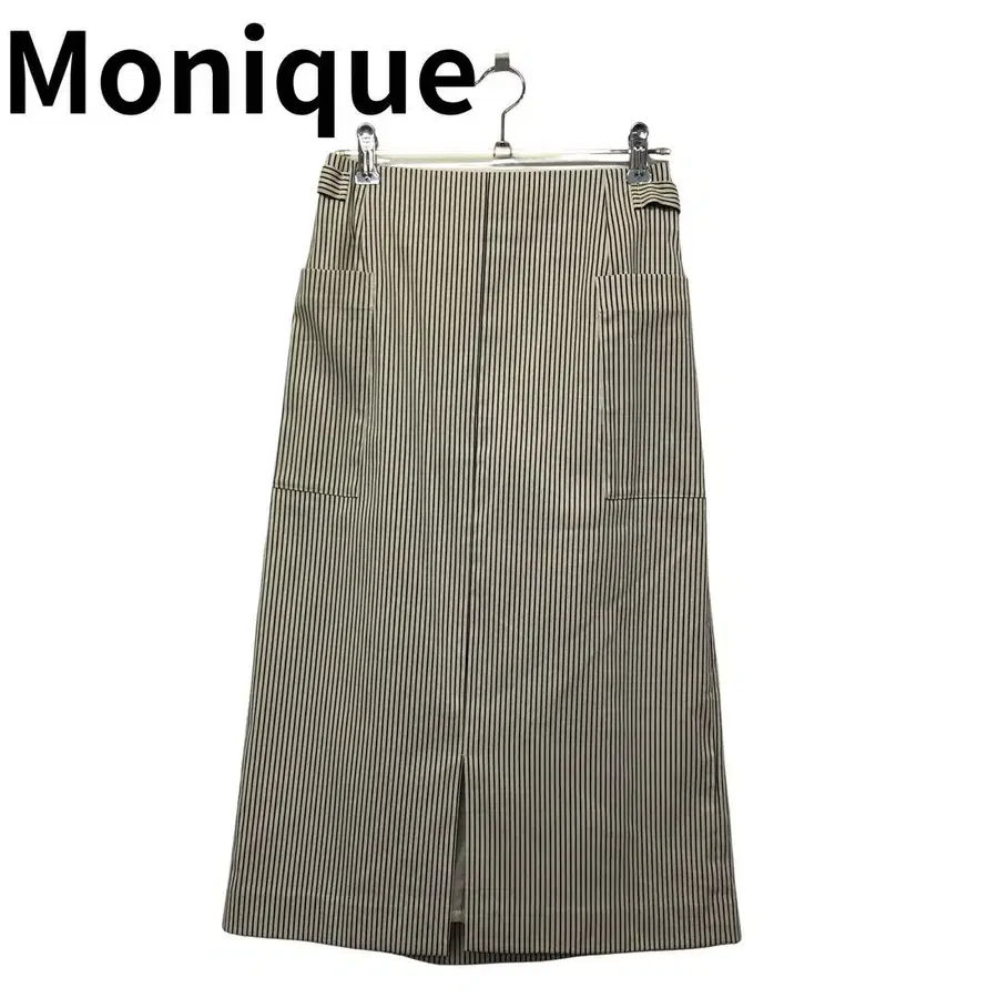 모니크 화이트 네이비 스트라이프 타이트 스커트 프론트 슬릿 뒷밴딩