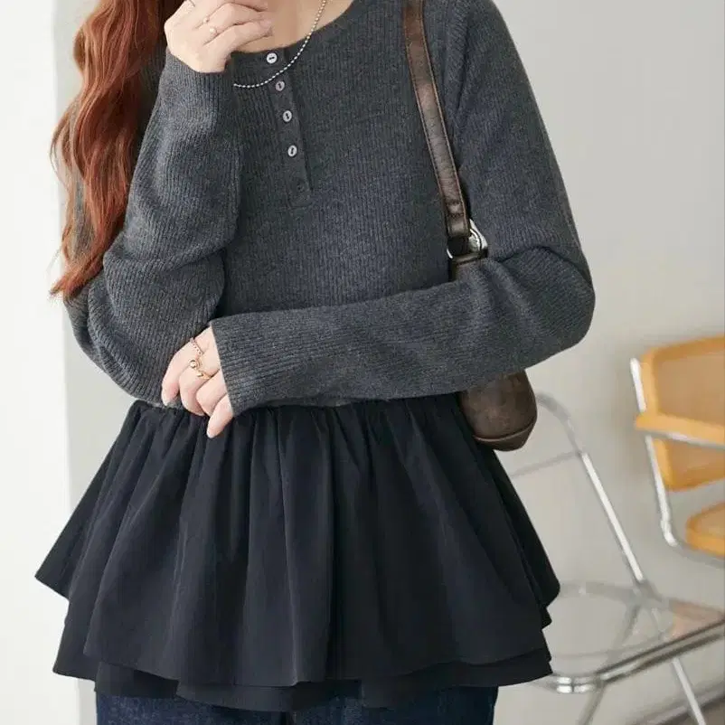 택 포함 새상품 discoat 그 외 소재 절개 페플럼 헨리 풀오버