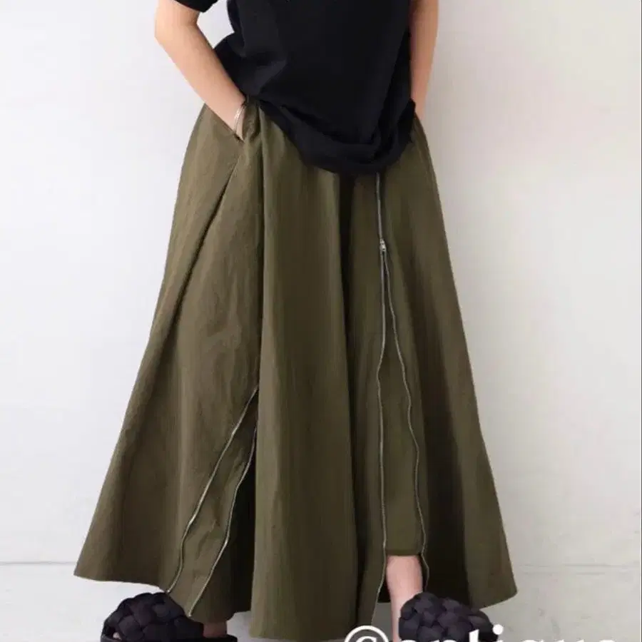새상품급 antiqua 안티카 플레어 지퍼 스커트 카키