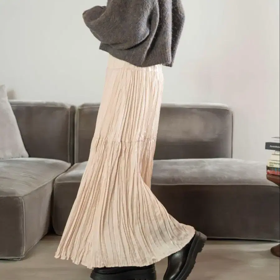 인기 [hinari] 히나리 빈티지 새틴 와셔 스커트 / 아이보리