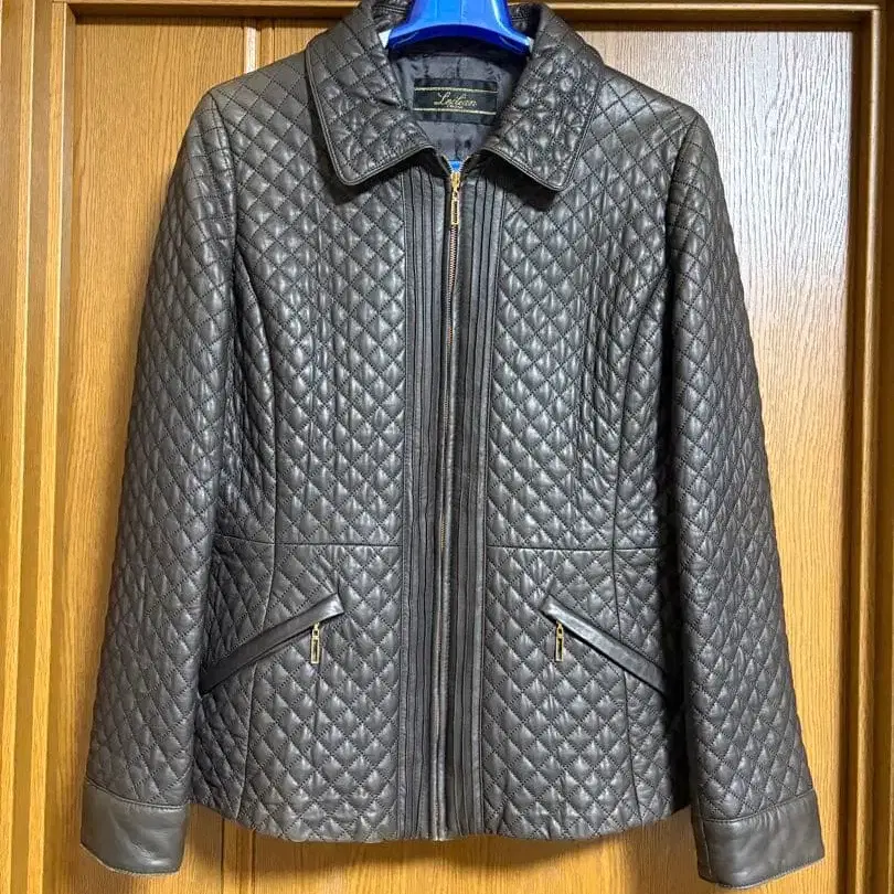 Leilian 브라운 가죽 자켓 퀼팅 양가죽