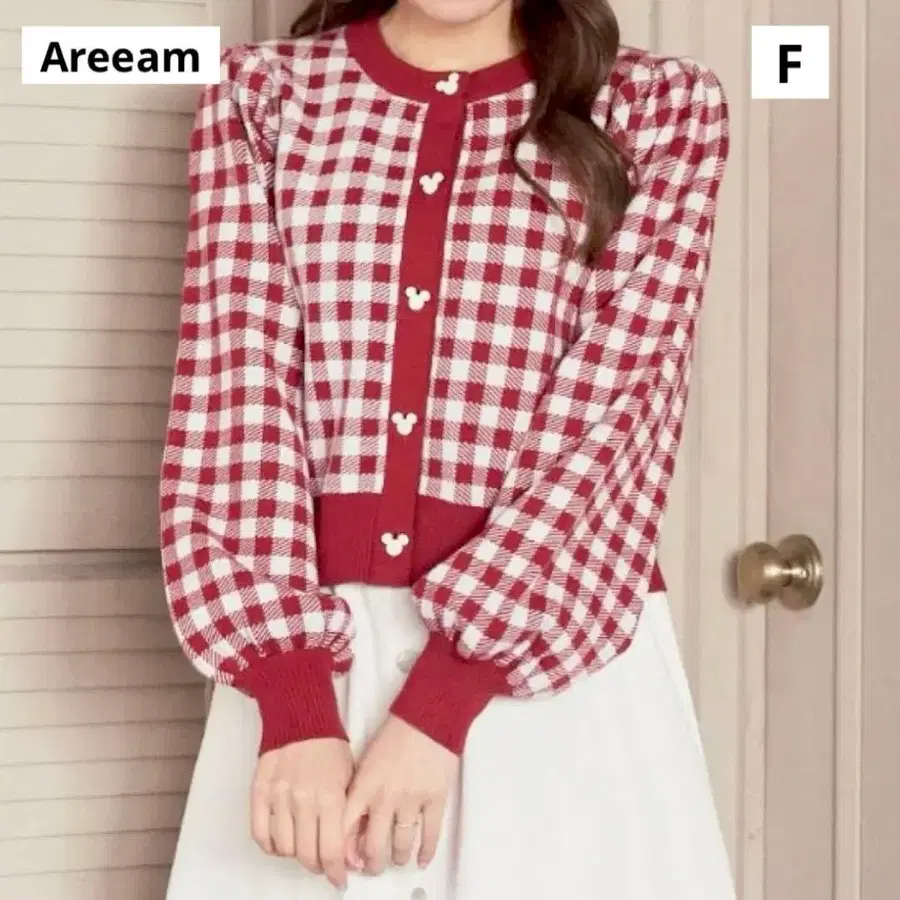 [미사용 새상품] Areeam 디즈니 체크 무늬 니트 가디건