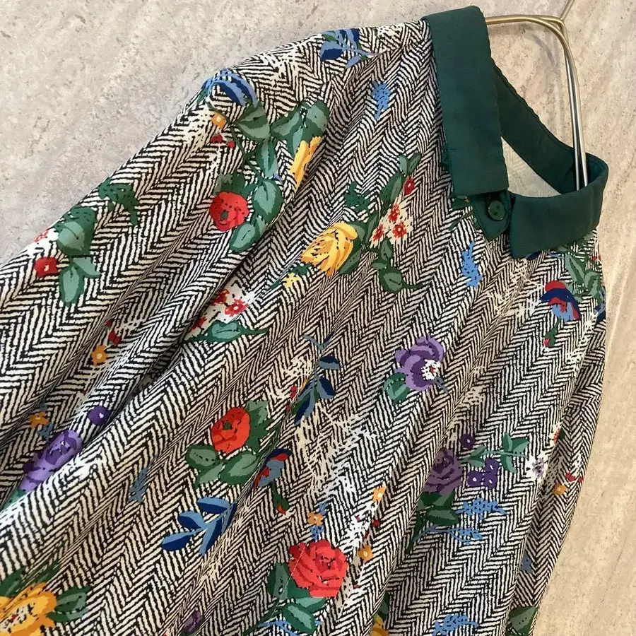 빈티지 블라우스 꽃무늬 올 패턴 레트로 앤티크 모노톤 그린