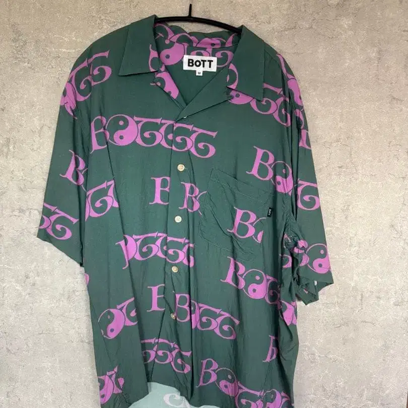 BOTT 22ss 그린 컬러 보라색 로고 셔츠