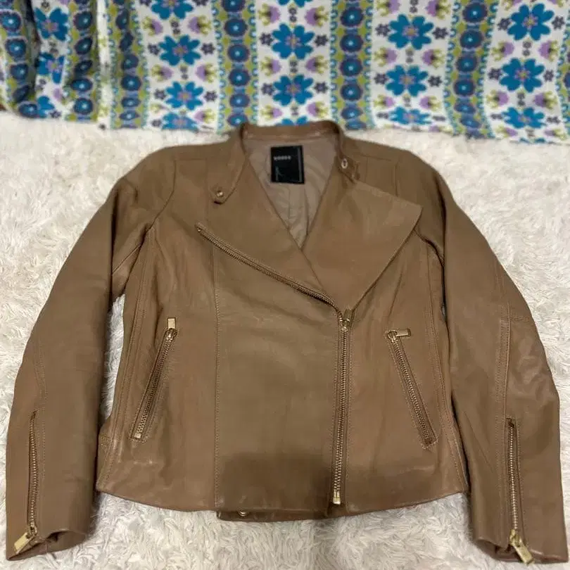 NOBLE 가죽 라이더 자켓 34 핑크 베이지