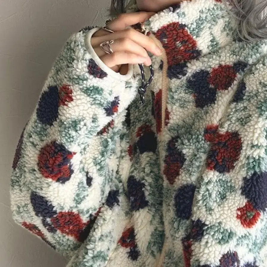 classical elf 자카드 무늬 오버 사이즈 보아 블루종 아이보리