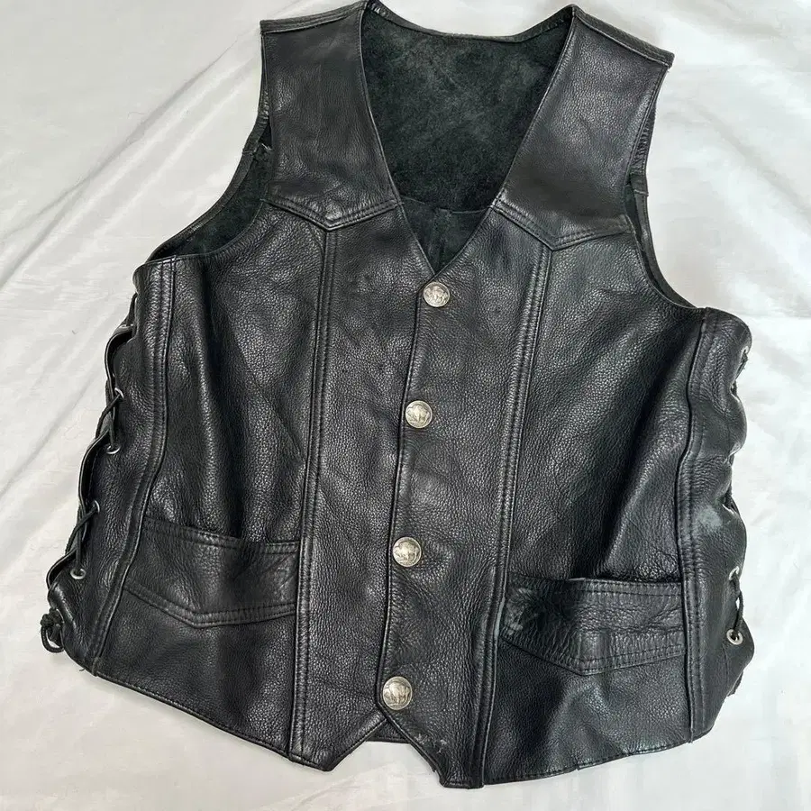 빈티지 L 가죽 천연 가죽 사이드 레이스업 블랙 가죽 베스트