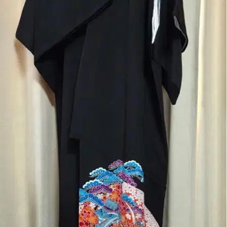 순수 실크 블랙 전통 예복 기모노 다섯 문양 히요쿠츠키 톨 사이즈