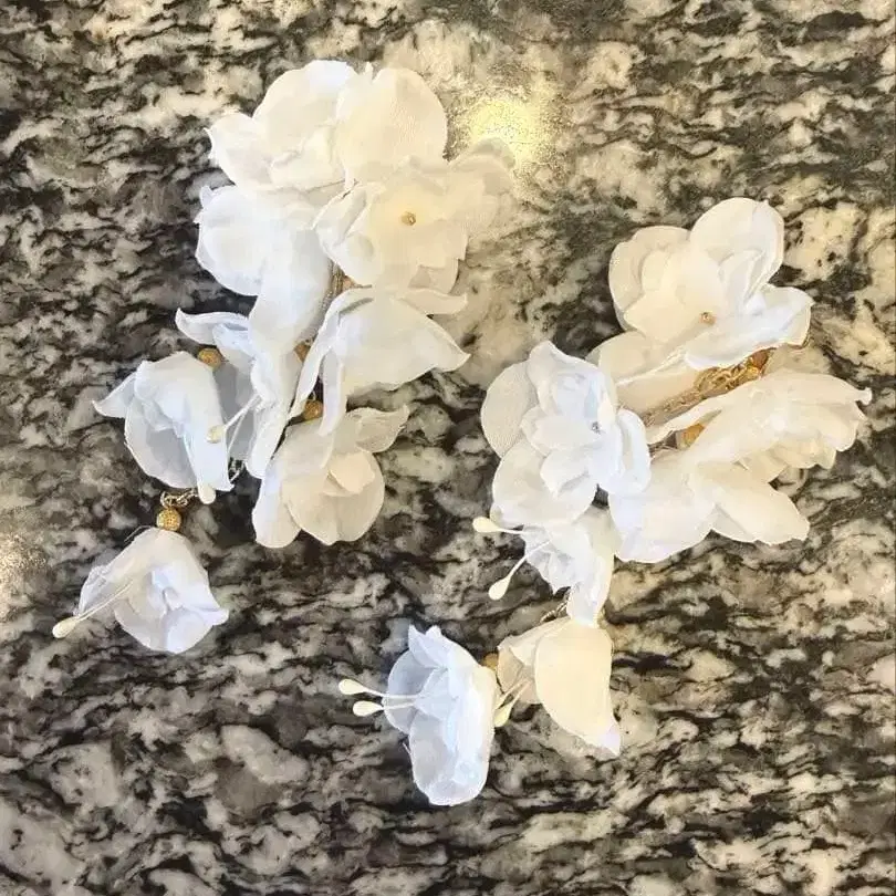웨딩 액세서리 귀찌 귀걸이 골드 꽃 모티브 핸드메이드
