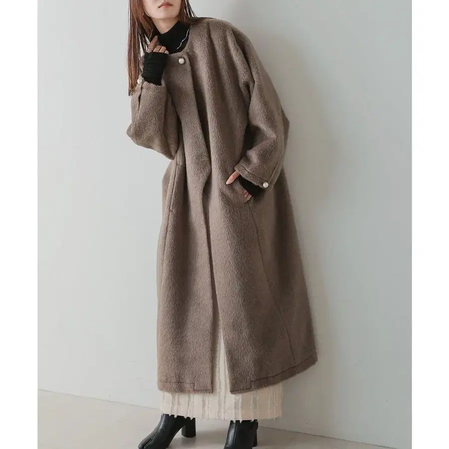 Bab 바브 샤기 펄 버튼 오버 실루엣 코트 브라운