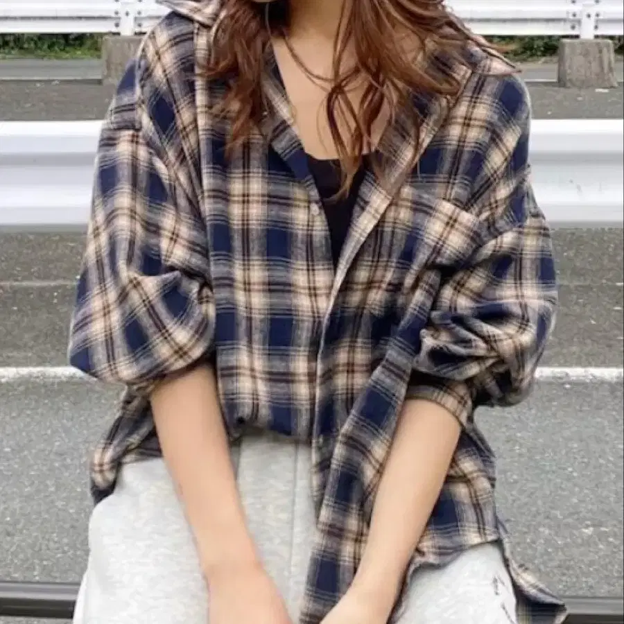 Ungrid 체크 무늬 오버 사이즈 셔츠