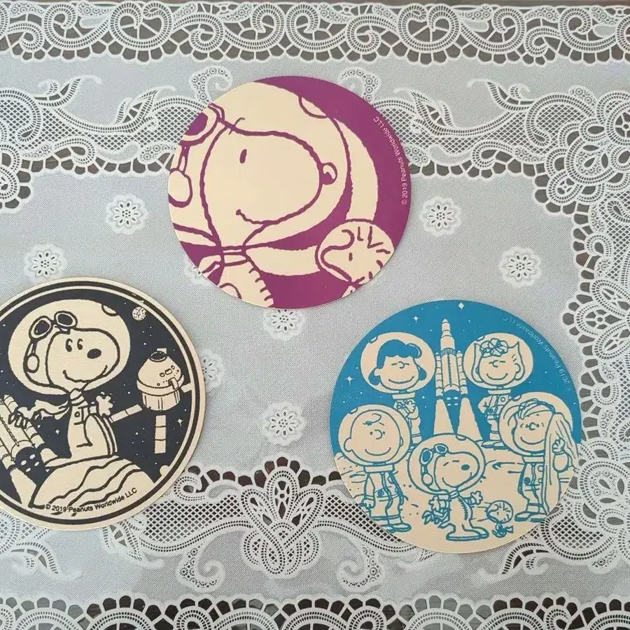 스누피 우주비행사 캐릭터 종이 코스터 세트
